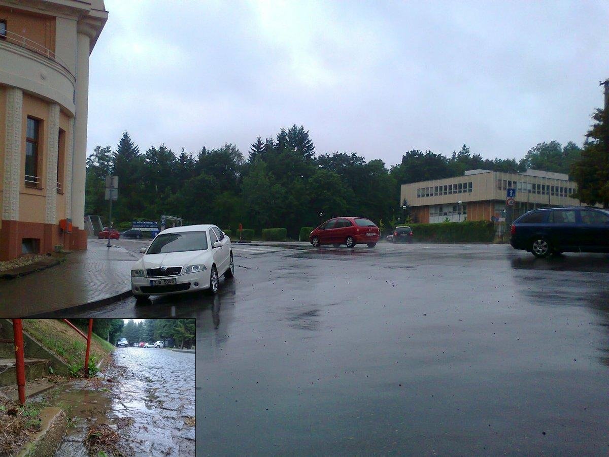 V noci bouřka,dnes celí den zataženo a od dopoledne trvale prší. Od půlnoc do teď spadlo 18mm srážek,a za vesnicí je kolem dokola slabá mlha. foto 31.7.2014-13:00