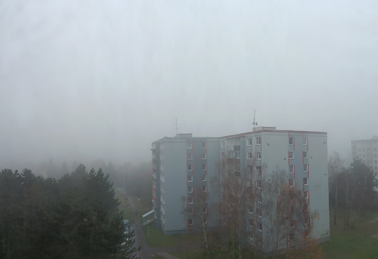 Mlha, slabě mrznoucí. Bezvětří (tak vypadá že bude další ledový den)