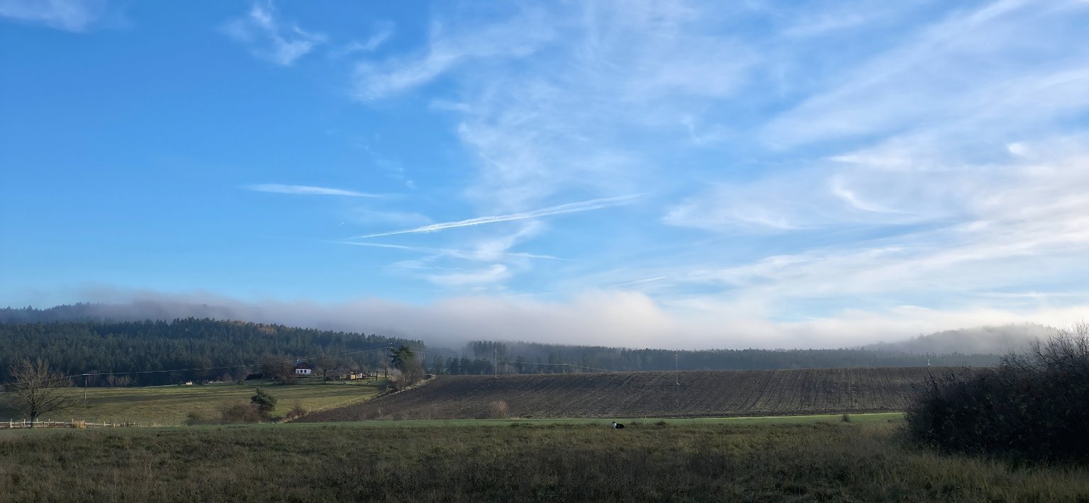 5,2°C, Skoro jasno až polojasno, Sníh: 0 cm. Hezký je, jsme obklíčení inverzmí, inverze je jak za Třincem, tak na Slovensku...