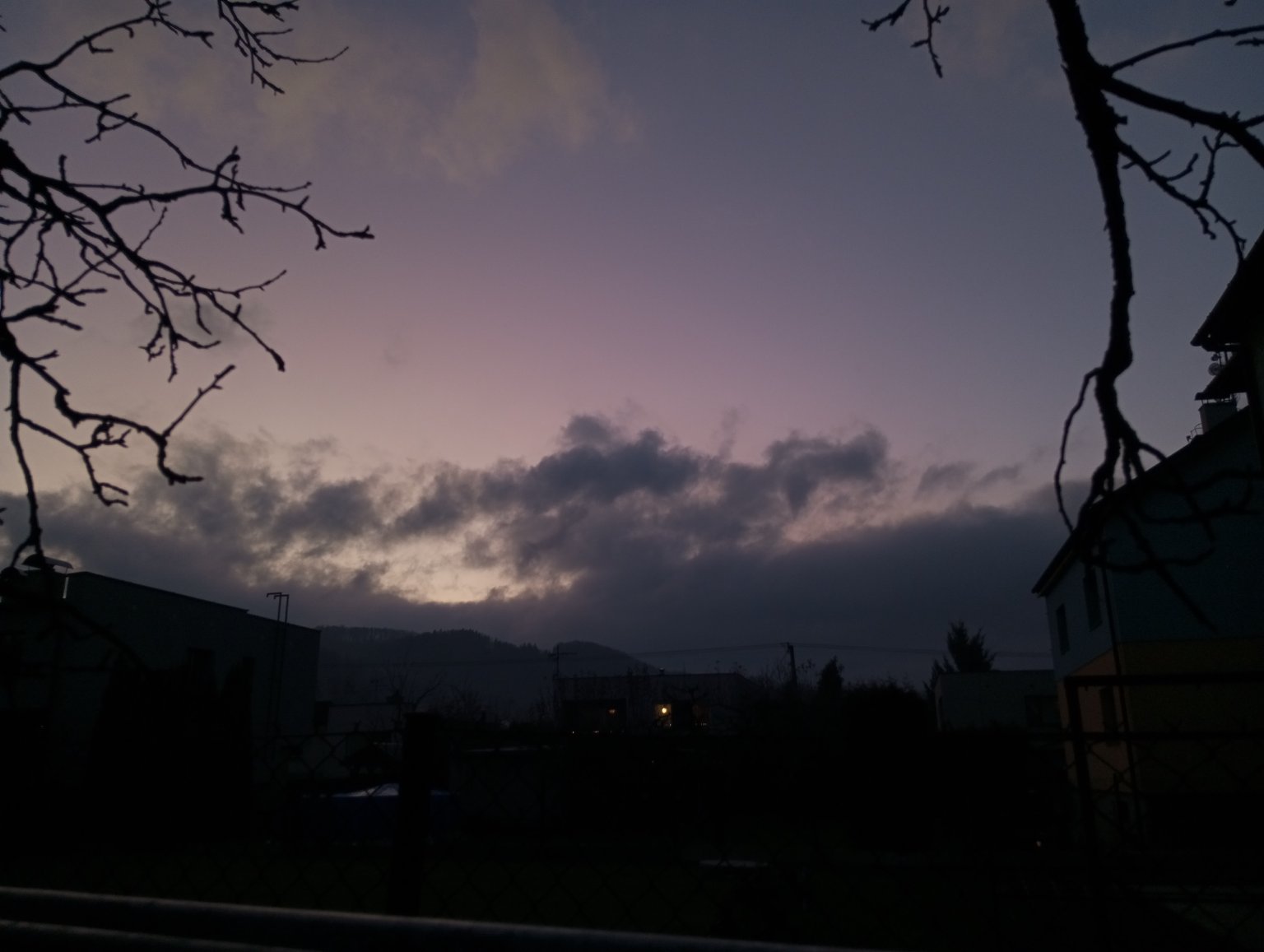 Stále zataženo inverzní oblačností, slabý JZ. vítr, tlak 1025,7 hPa.