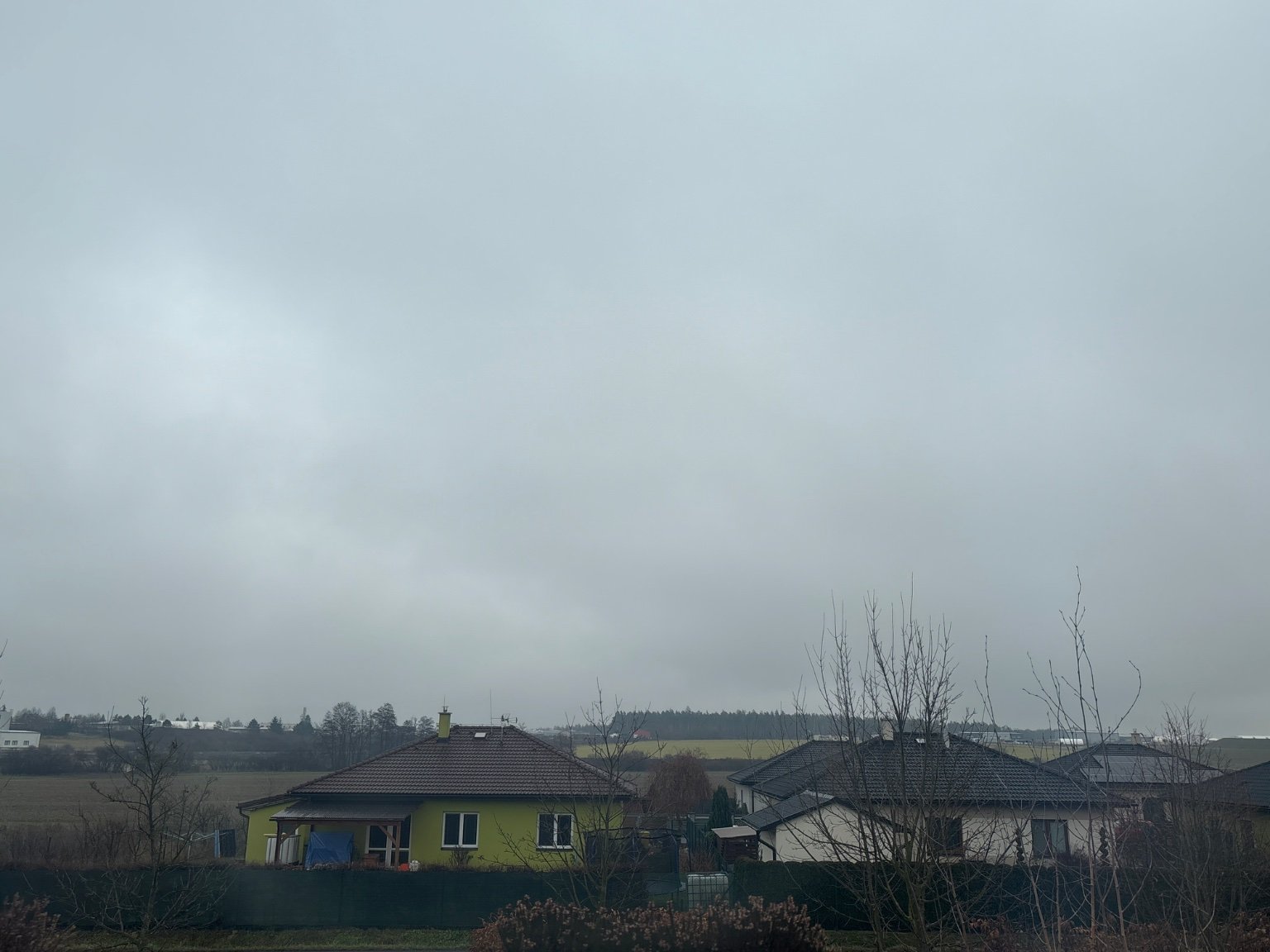 Na S přízemní mlha, slabý SV vítr