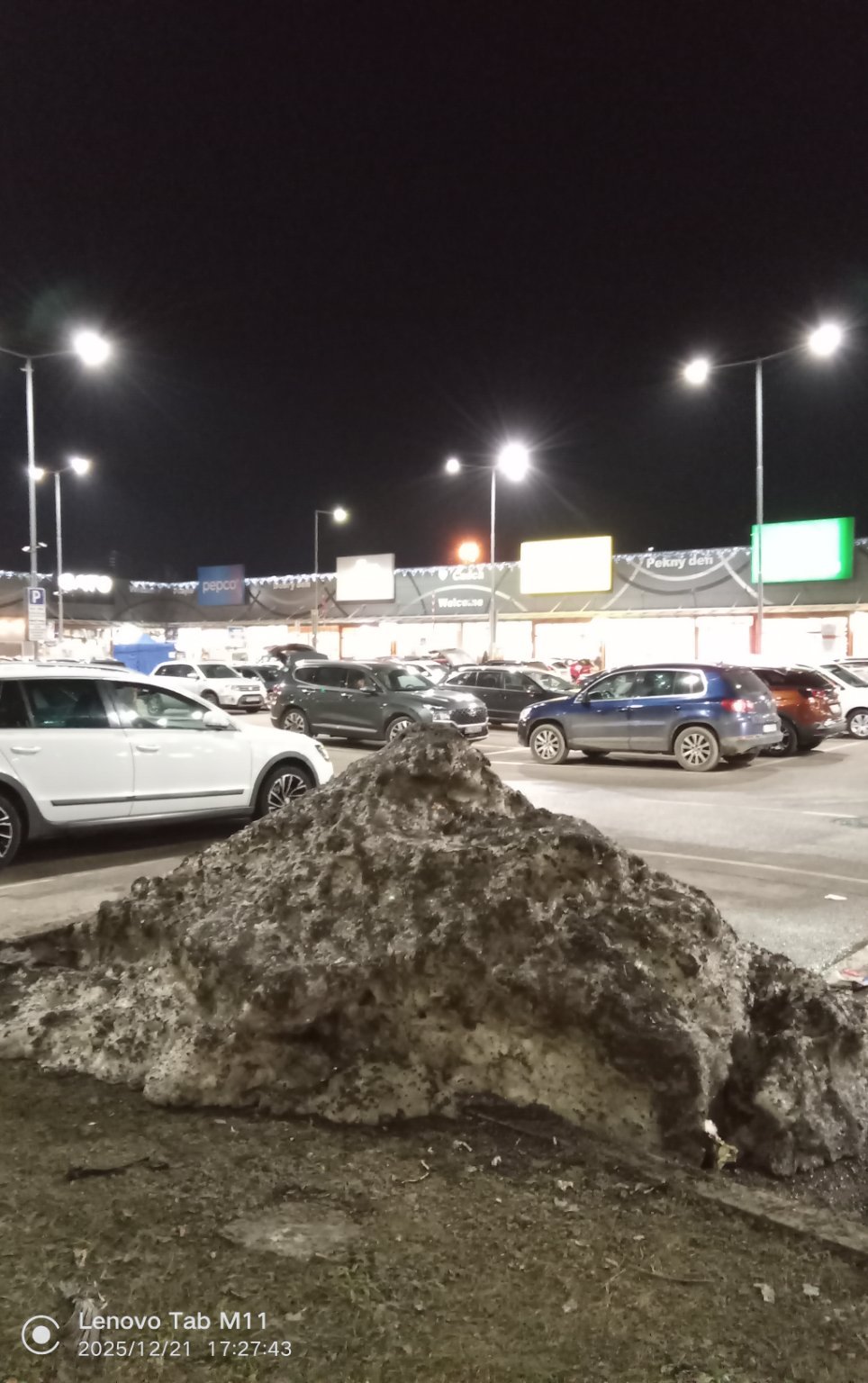 Většinou oblačno, z komína je pěkný mrak a kostel krásně svítí.