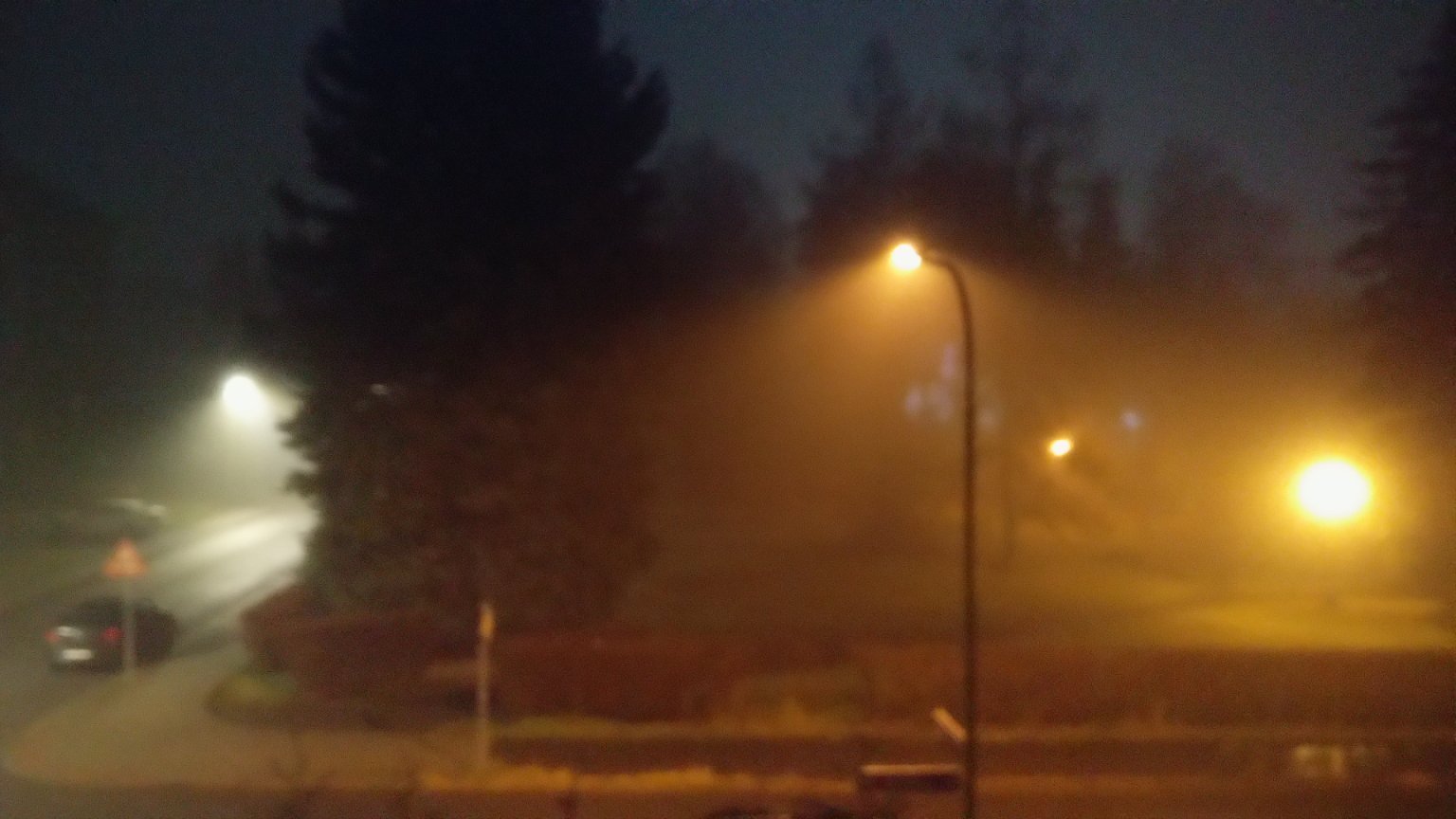 0,3°C, Velmi slabá mlha, Sníh: 0 cm. Za chvilku bude mrznout a tvoří se drobná mlha...