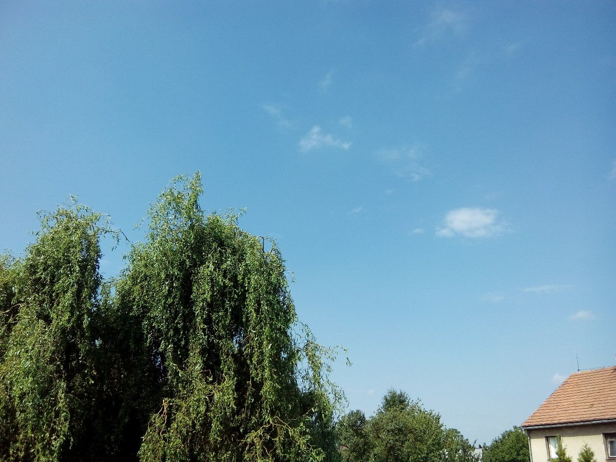Oblačno, JV vítr v nárazech 27 km/h, tlak 1013,1 hPa a vlhkost 56 %. Na severu burácí. Foto bouřkový mrak.