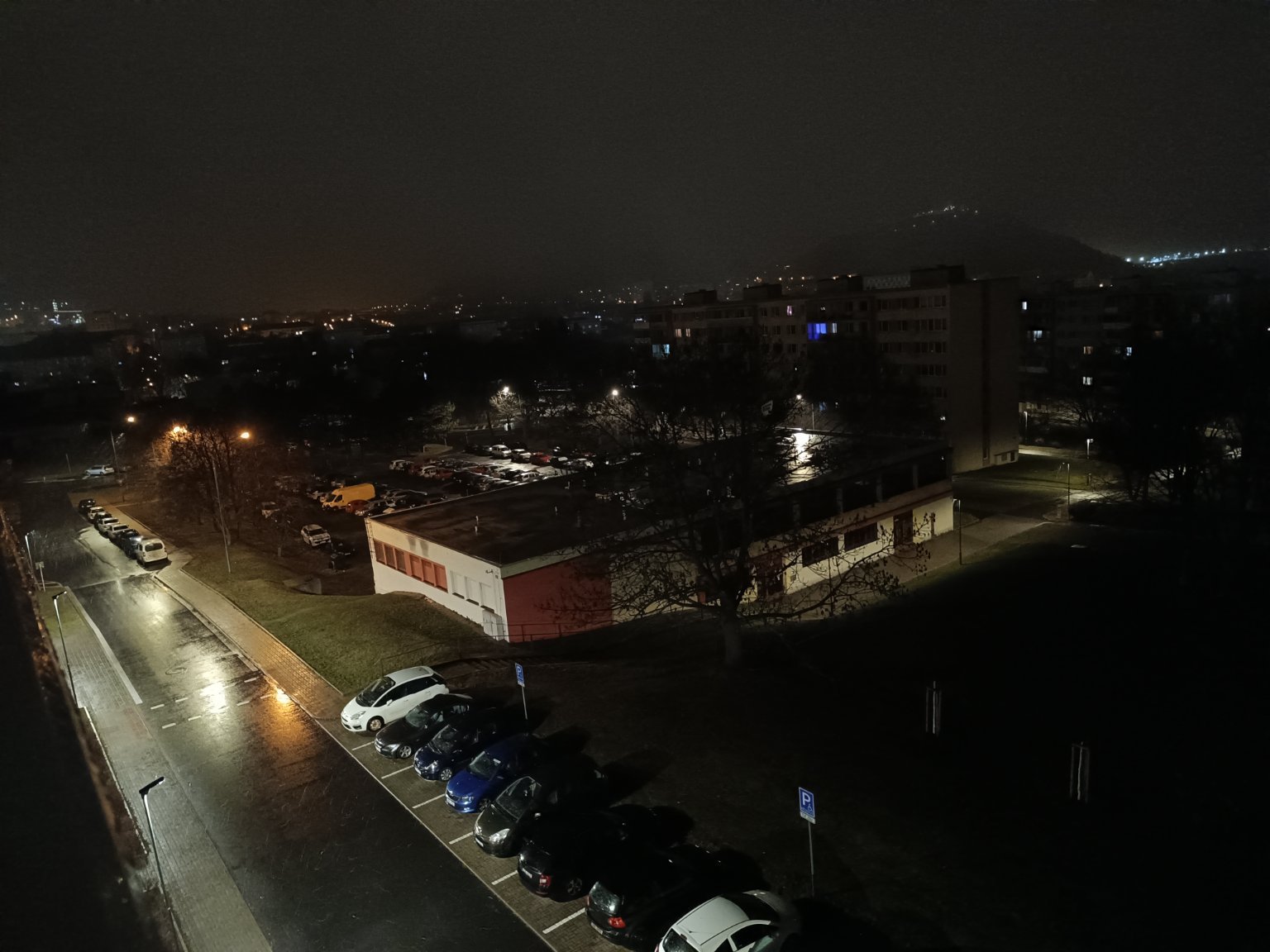 -0,6°C, Silné až velmi silné sněžení, Sníh: 1 cm. Nádherně z toho pasu válí, ale bohužel to tu vydrží jen chviličku...