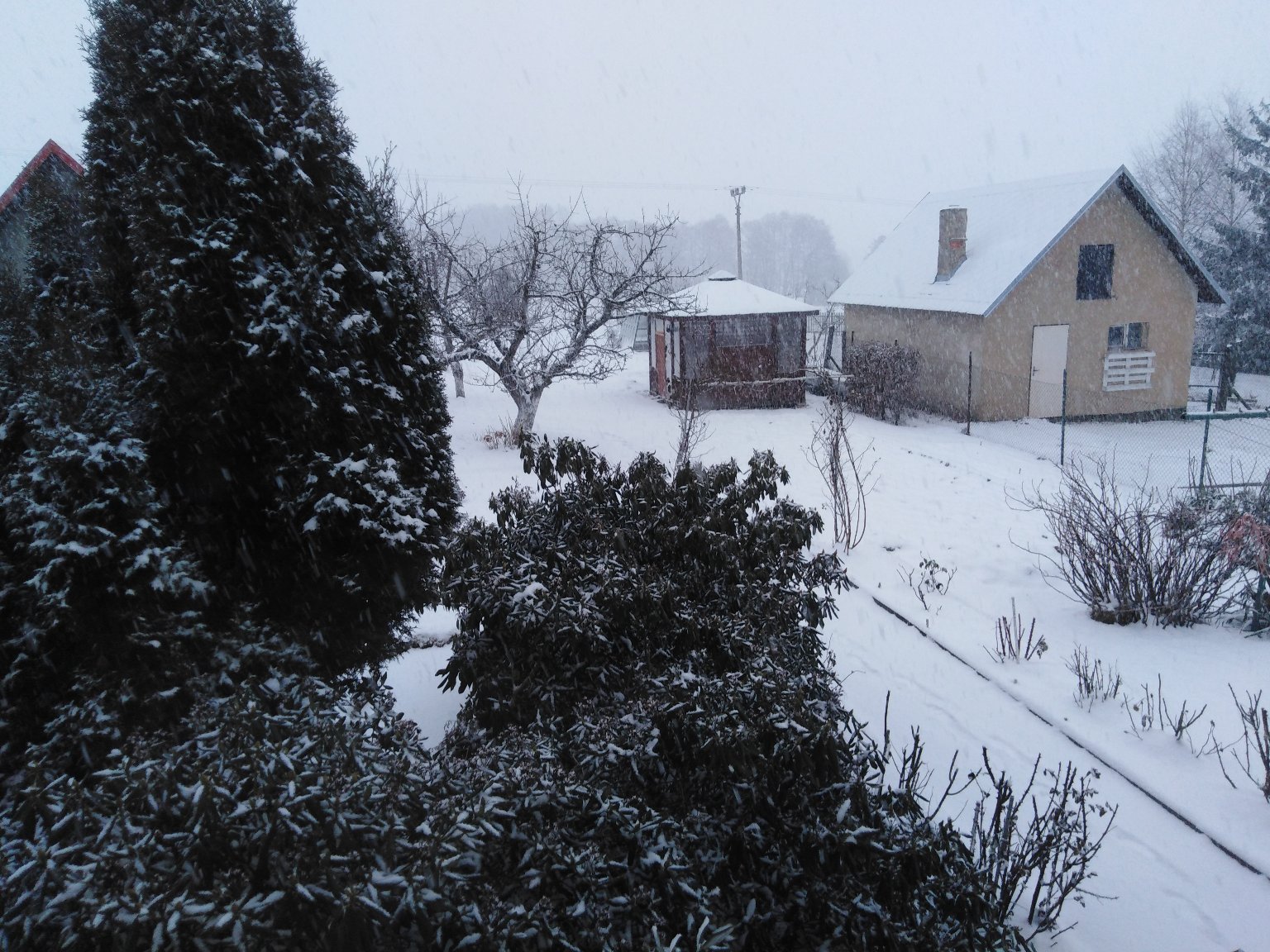 Mírný vítr od SZ., po vydatné sněhové přeháňce, tlak 1019,2 hPa - slabý pokles.