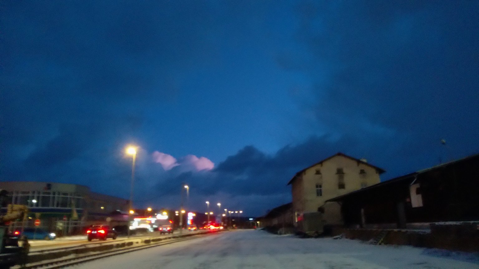 Aktuálně převažuje většinou polojasno až skoro jasno a fouká většinou mírný ledový vítr, pouze opticky bílo sněhu krapet méně než u nás