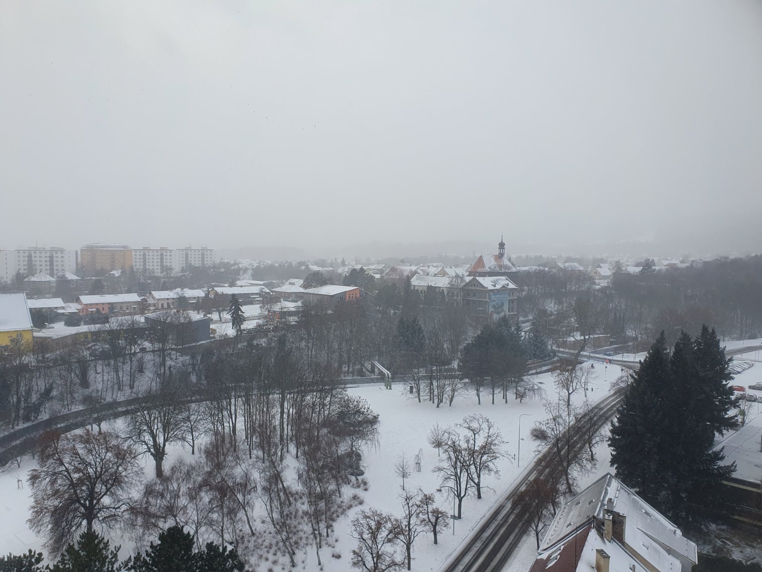 Zataženo, předtím svítilo i slunce chvilku a krátce slabě sněžilo Bezvětří