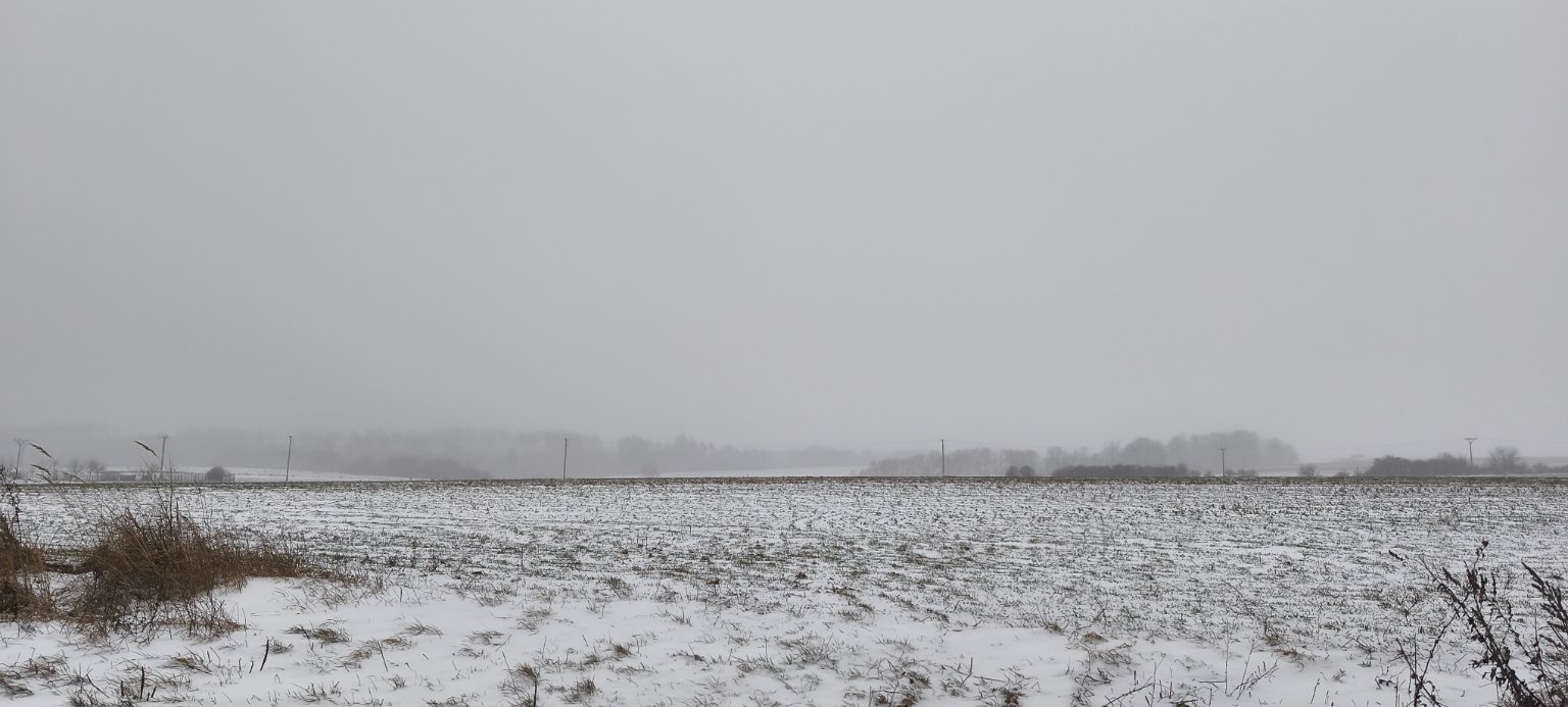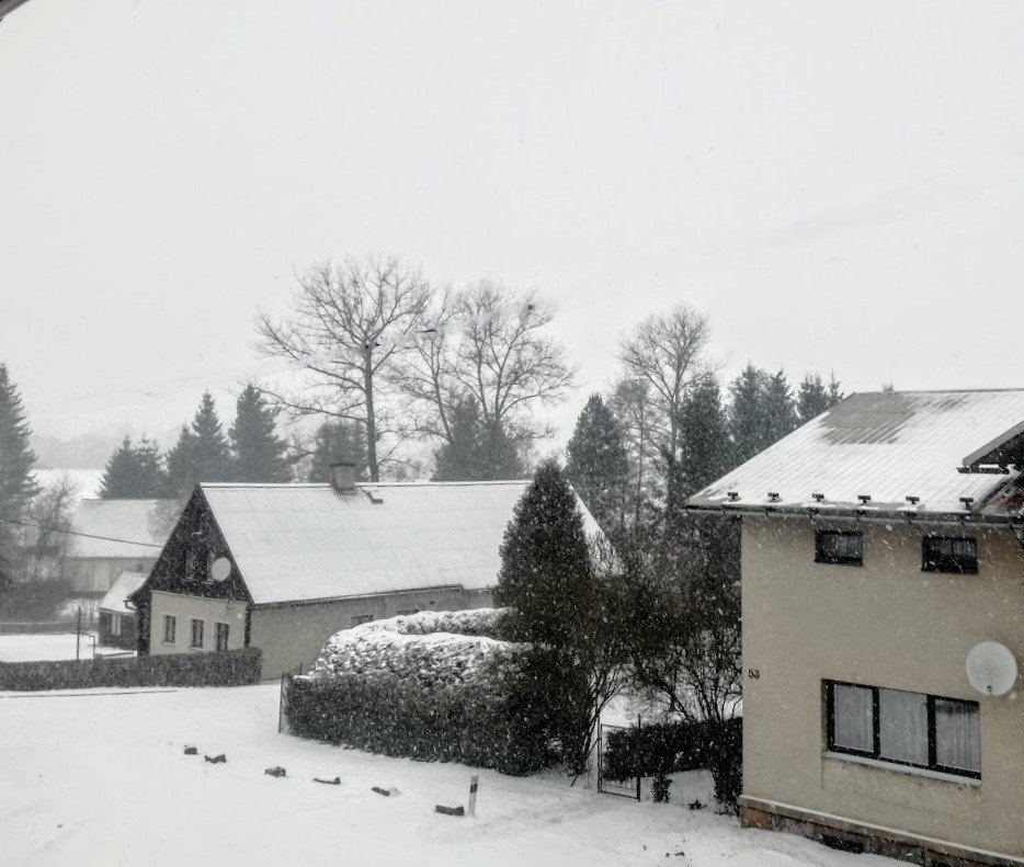 Trvale sněží a vane slabý vítr.