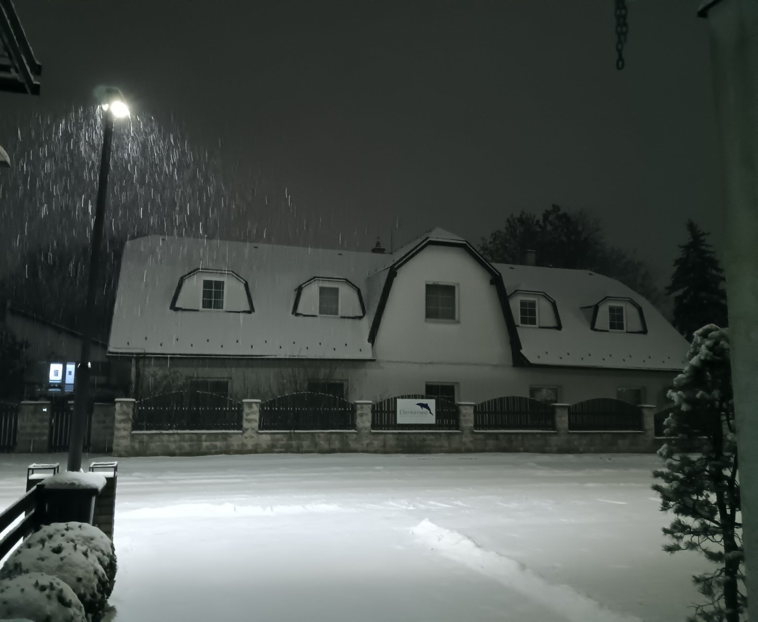 -3,8°C, Slabé až mírné sněžení, Sníh: 5 cm. Už začíná sněžit a i dělobuchy už se objevujou..