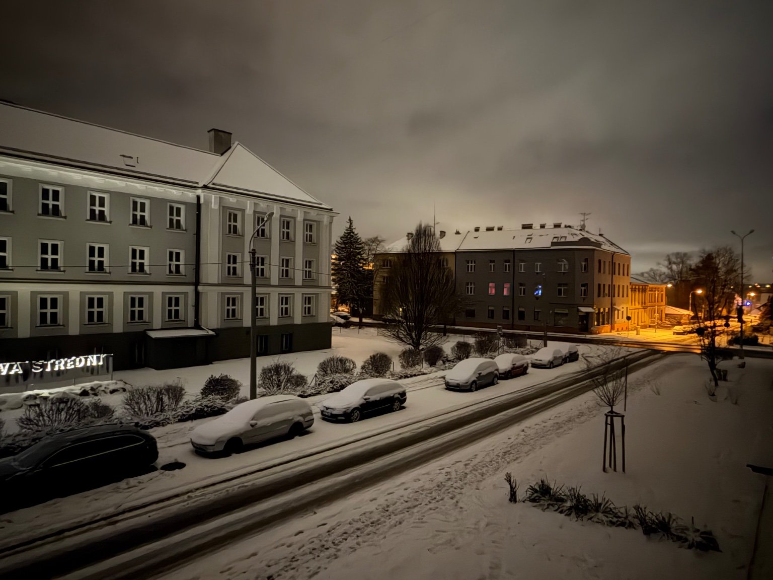 -3,4°C, Zanedbatelné až velmi slabé sněžení, Sníh: 8 cm. Božský klid, aj sněžit skoro přestalo..