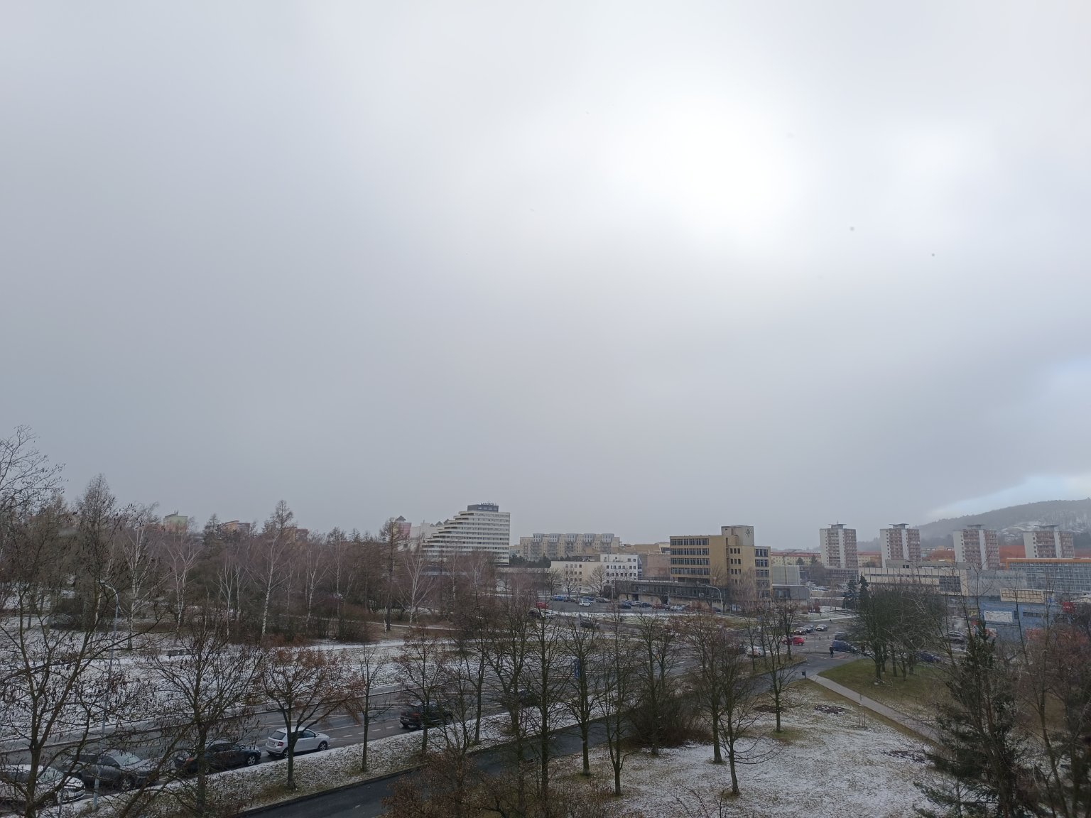 Čerstvý západní vítr, sníh s ledovou krustou odtává. Tlak 995,9 hPa - pokles.