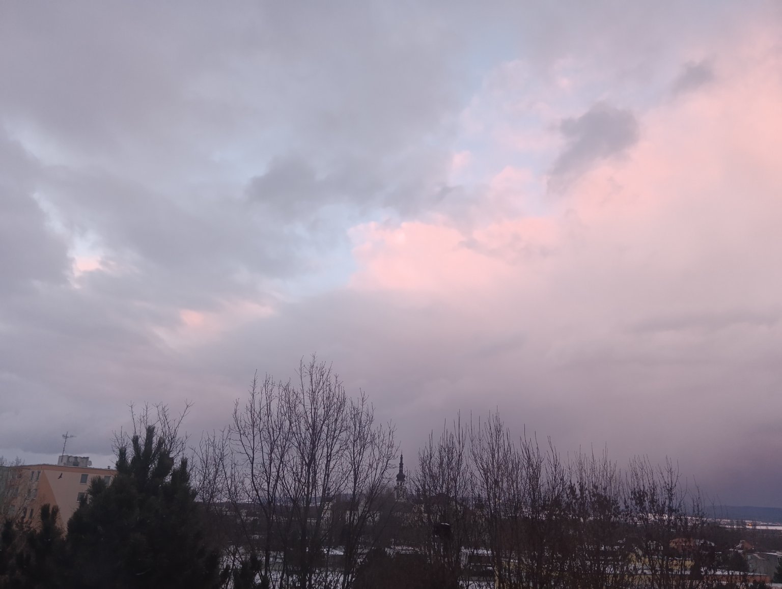 Oblačno, leží cca 4 cm sněhu.
