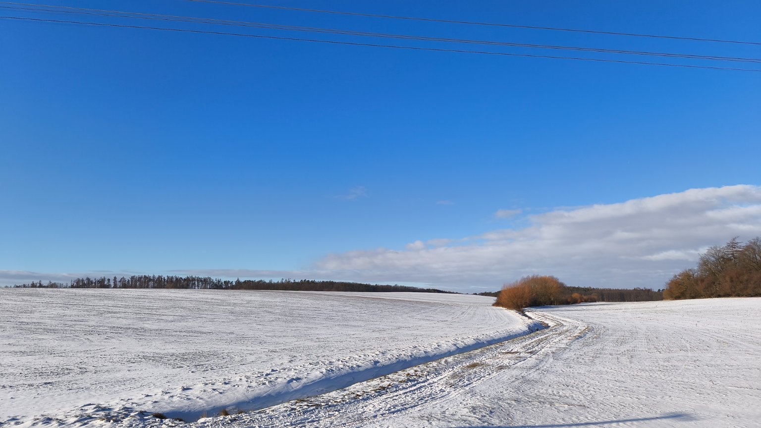 Polojasno, cca 3 cm sněhu, sníh pomalu odtává.