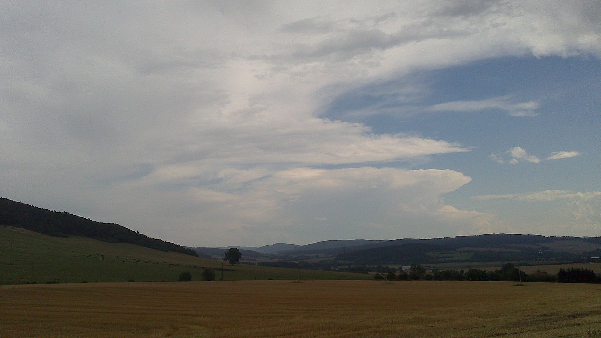 mame polojasno temer bezvetri. hrozne dusno. od vychodu bourkovy mrak viz foto