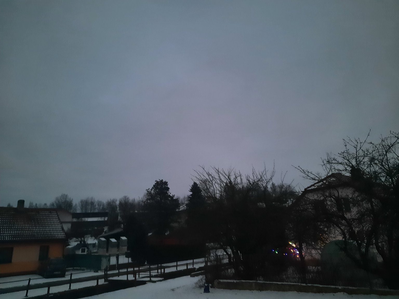 Místy nesouvislá sněhová pokrývka, jinak okolo 3 cm. Klidno nebo jen velmi slabý JV. vítr, tlak 1014,9 hPa, nejvyšší teplota byla -4,3°C.