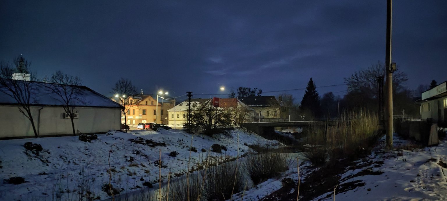 Skoro zataženo, další ledový den. Cca 2 cm sněhu.