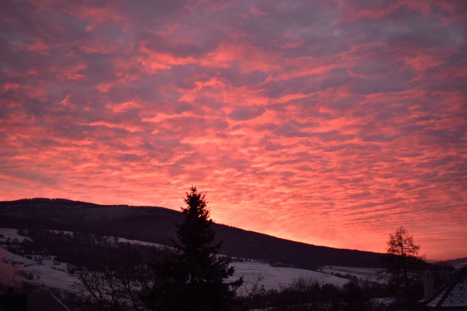 Aktuálně převažuje většinou zataženo, slabé až mírné sněžení, fouká většinou slabý místama až mírný vítr