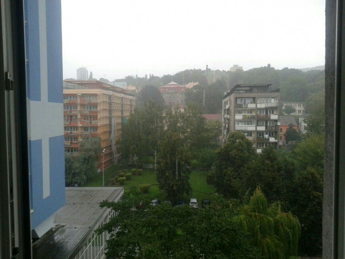 Od 13,00 hod. prší a bouří. Proměnlivý vítr 5 km/h, tlak 1016,4 hPa a vlhkost 67 %.