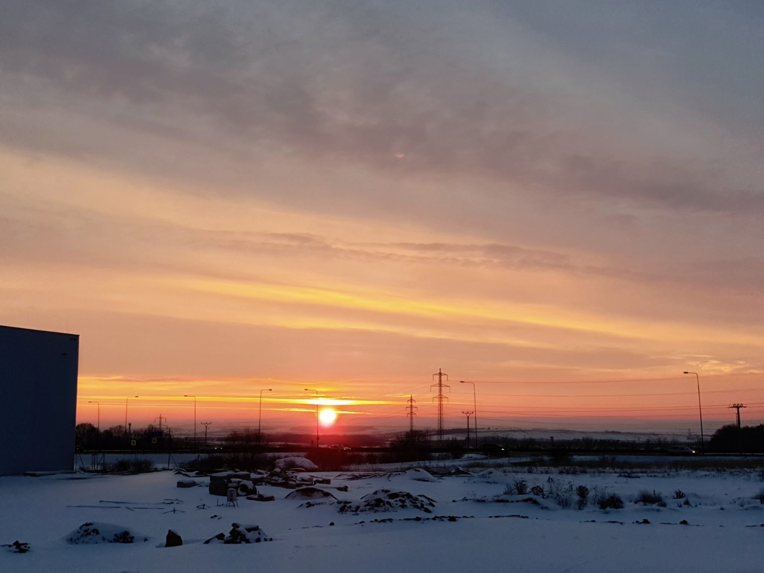 Jasno, cca 5 cm sněhu. Velká kosa, ale nejchladnější ráno jsme nepřekonali.