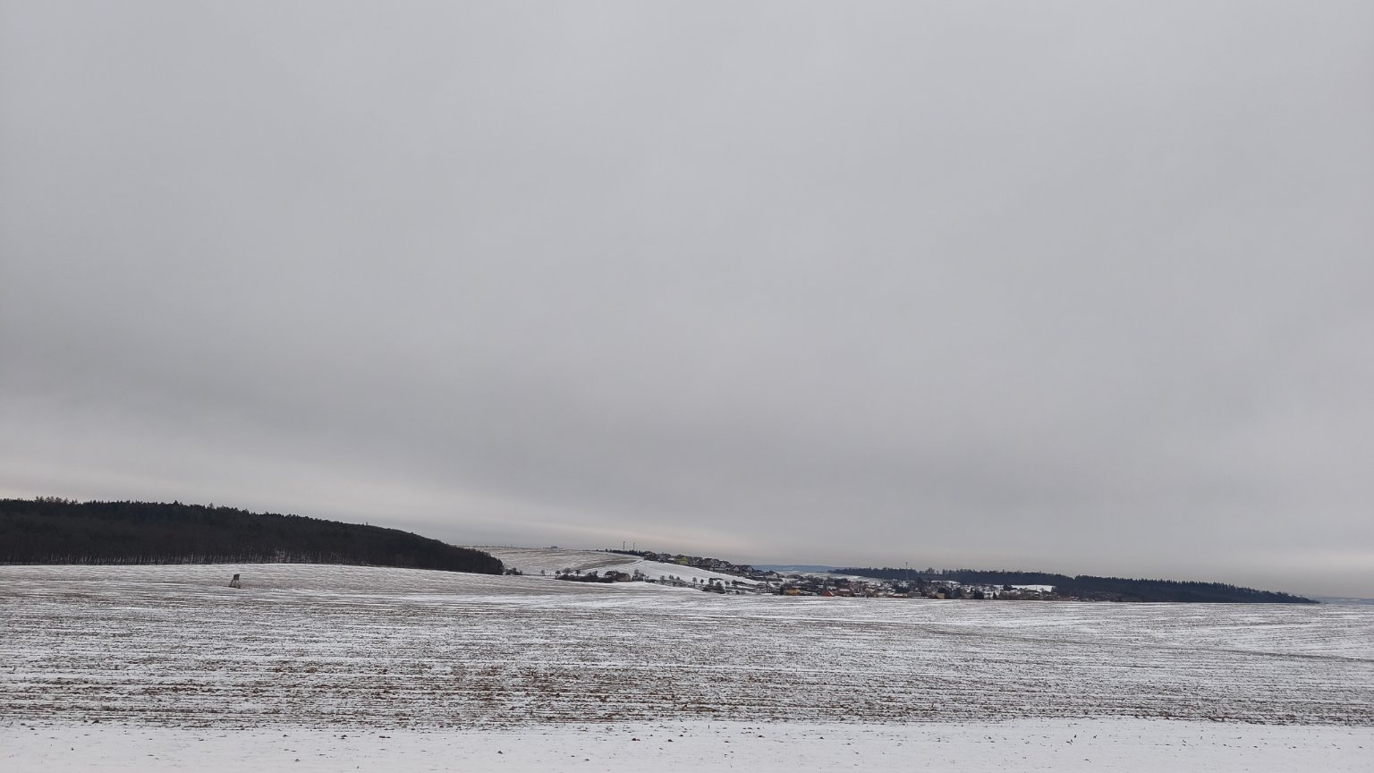 Aktuálně převažuje většinou zataženo, slabounké drobné sněžení a fouká většinou vánek až slabý větřík