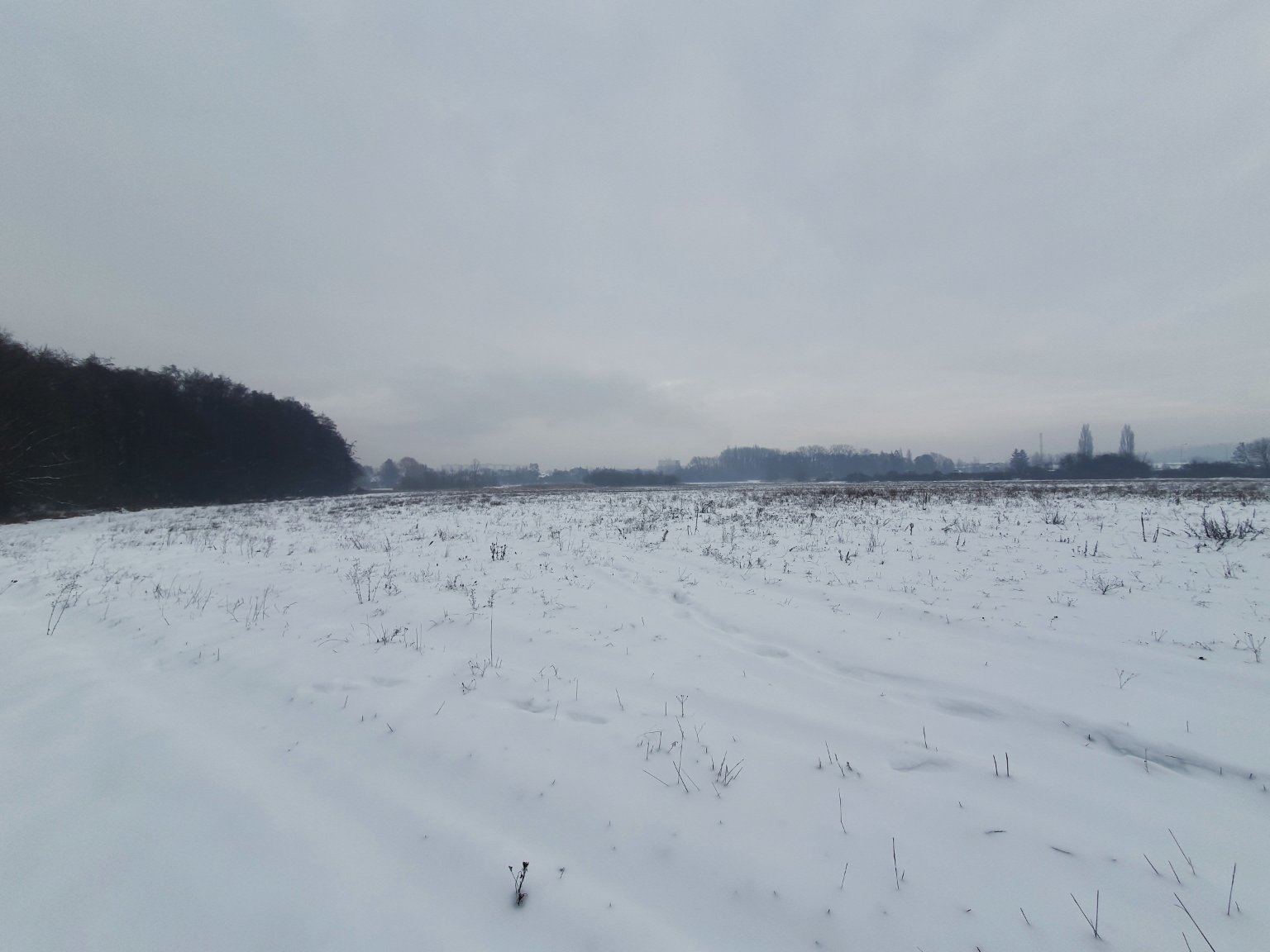 sníh silně slehl a je mokrý