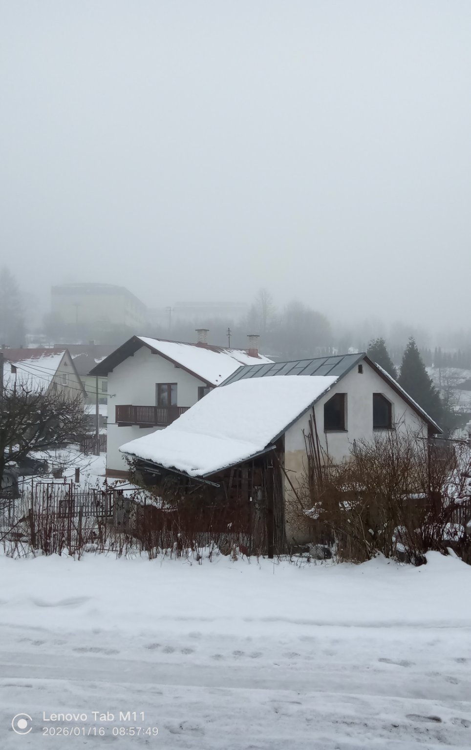 Zmrzlý sníh. Slabý JV. vítr, tlak 1023,2 hPa.
