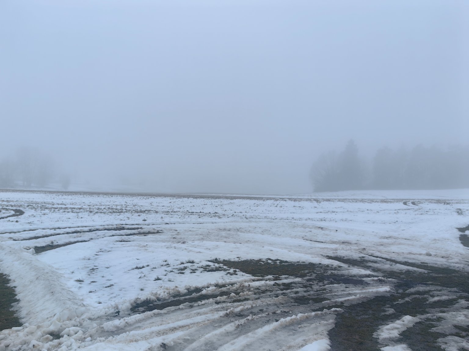 Zataženo. Bezvětři (většinou cca 3 cm sněhu, někde míň, někde i víc)