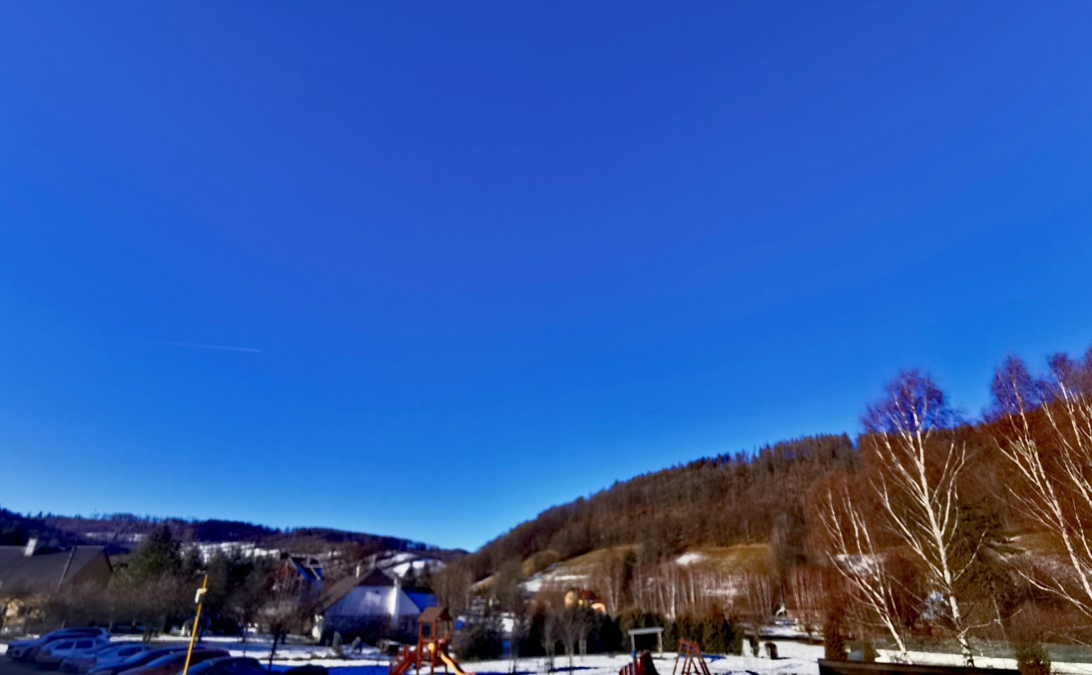 Jasno, poslední fleky po sněhu.