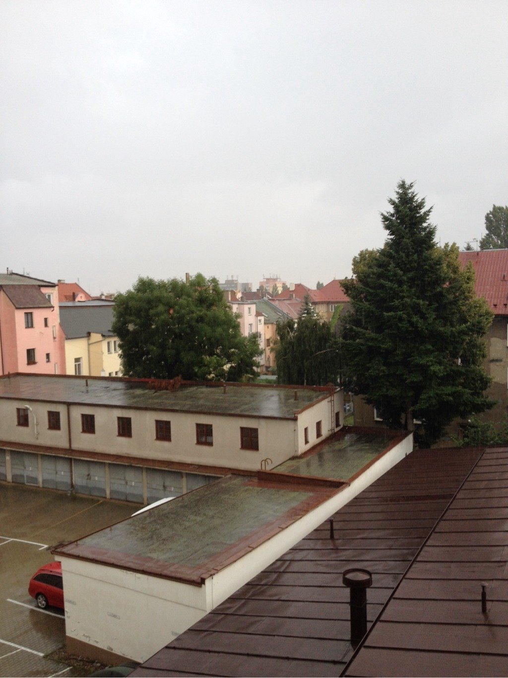 Po přeháňce. Tlak 1016 HPa, vlhkost 68%, teplota 24°C.