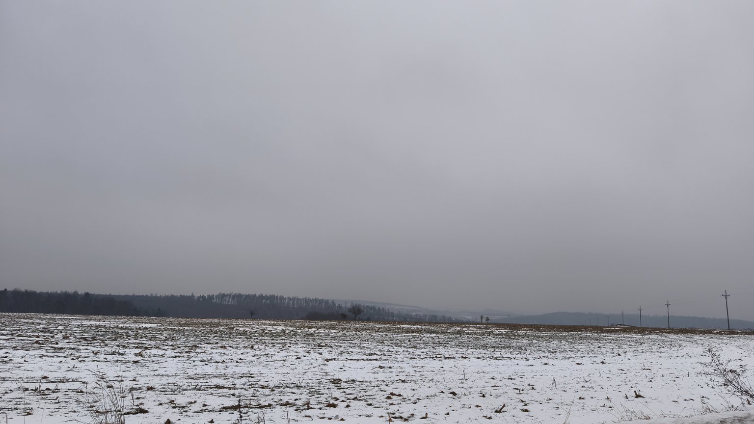 zataženo v dáli mlha, -7°C / zamrzlá řeka Jihlava
