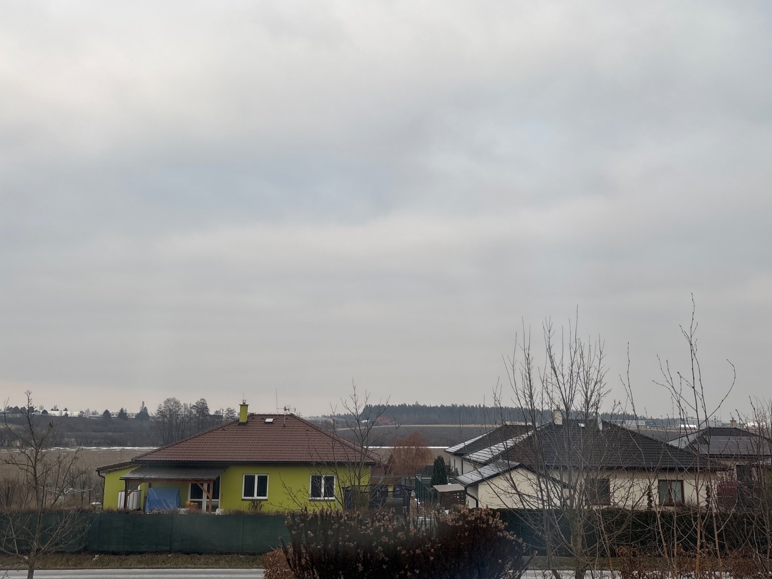 Oblačno, nesouvislý sníh, zatáhlo.