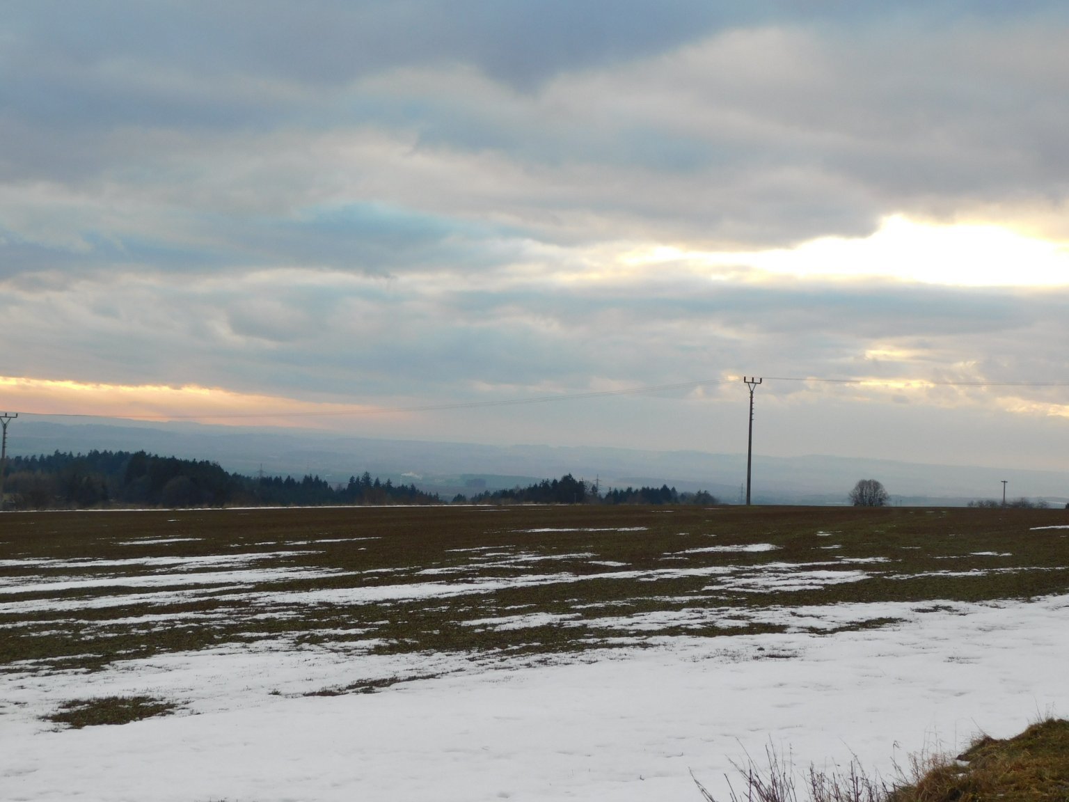 Skoro zataženo, mírný vítr se změnil na slabý jihozápadní.
