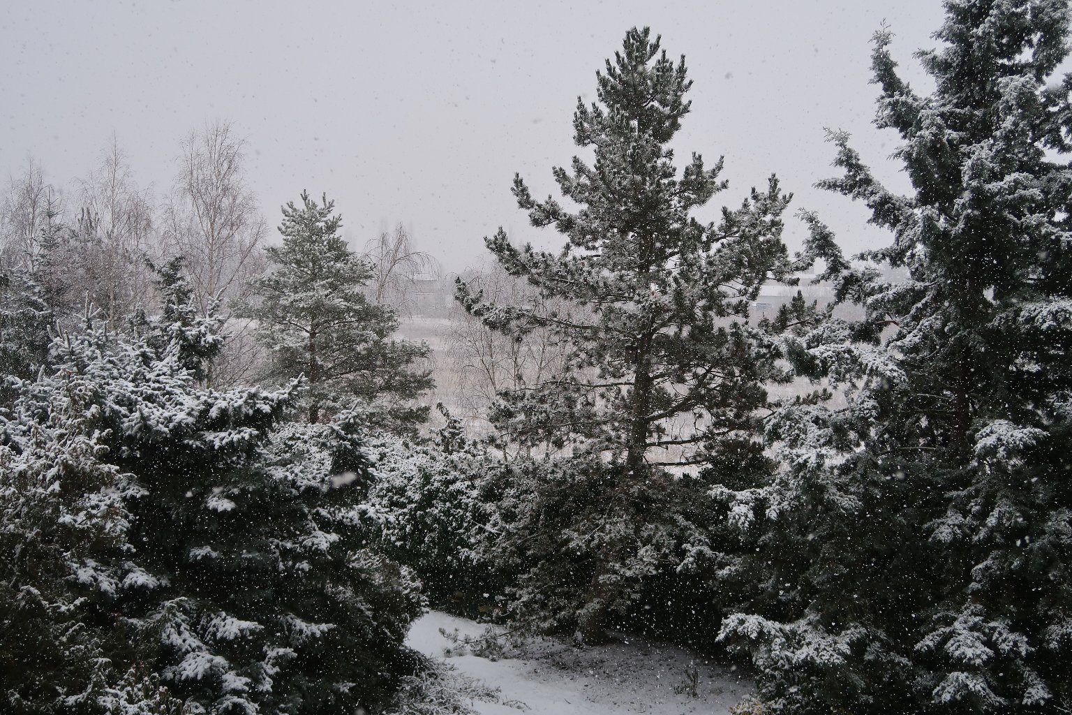 Slabé až mírné sněžení, sníh taje, ale poprašek se zatím drží.