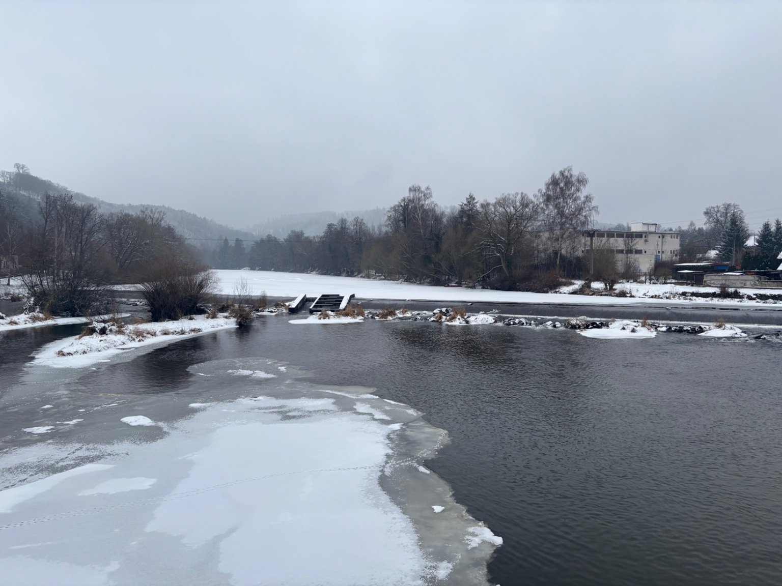 Od včerejšího dne nasněžilo 4 až 6cm sněhu, je zataženo a teplota kolem 0°