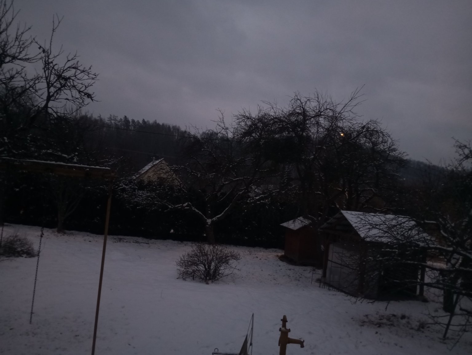 -6,9°C, Zataženo, Sníh: 3 cm. Tak v noci už nijak nesněžilo...