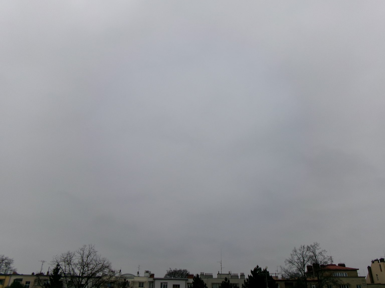 Mlhavo, sníh už roztál prakticky všude kromě trávy a na krajích chodníků. Poprašek.