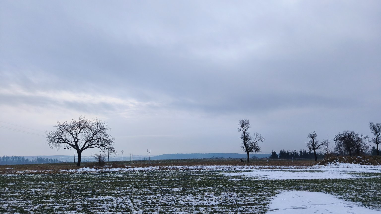 0°C, Zataženo až oblačno, Sníh: nesouvislý. V noci bylo nad nulou, takže žádná ledovka se nekoná, ale ojedinělé se vytvořilo náledí z tajícího sněhu.