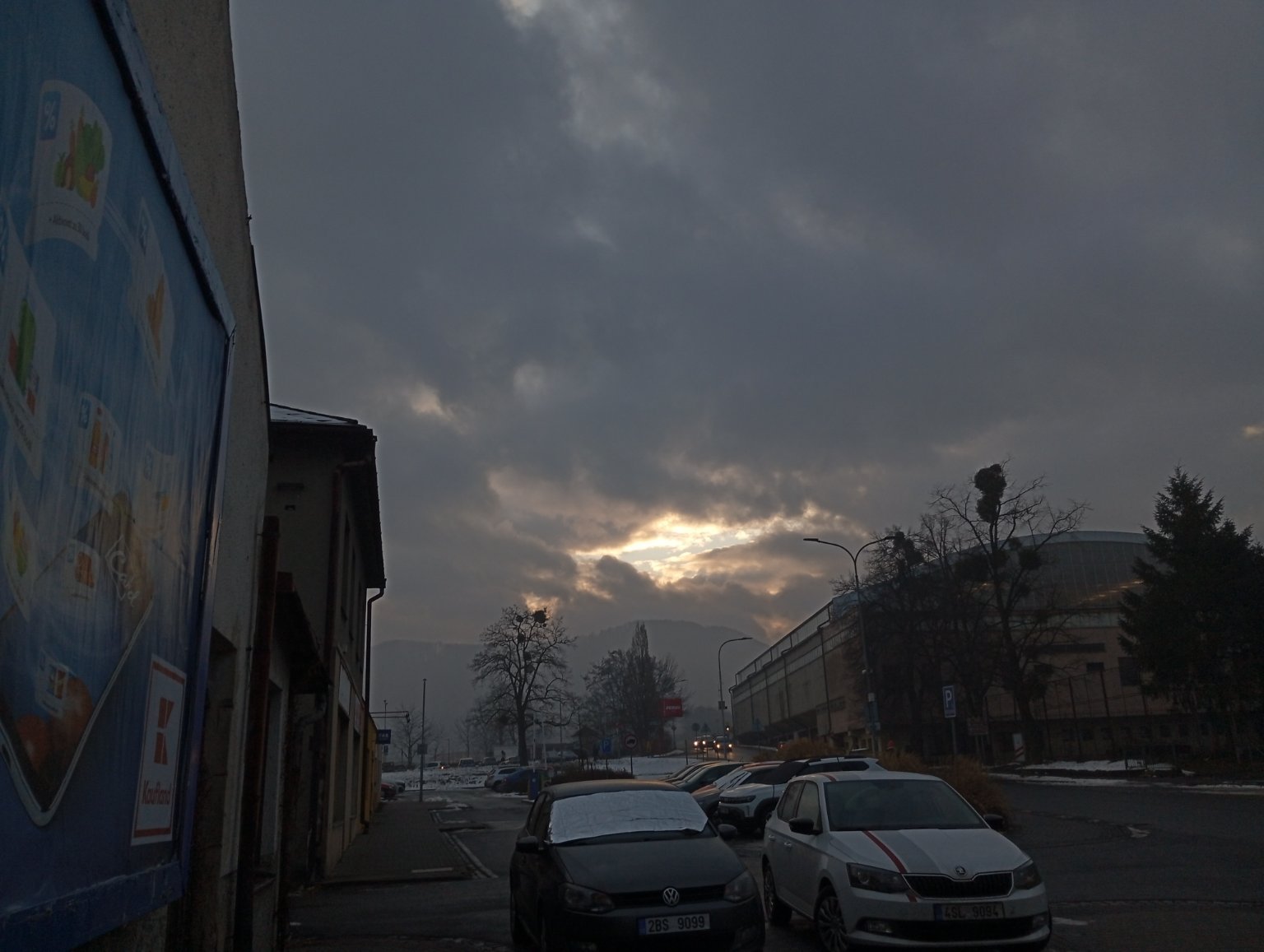 Oblačno. Bezvětří (u pergol kaluže z roztateho sněhu)