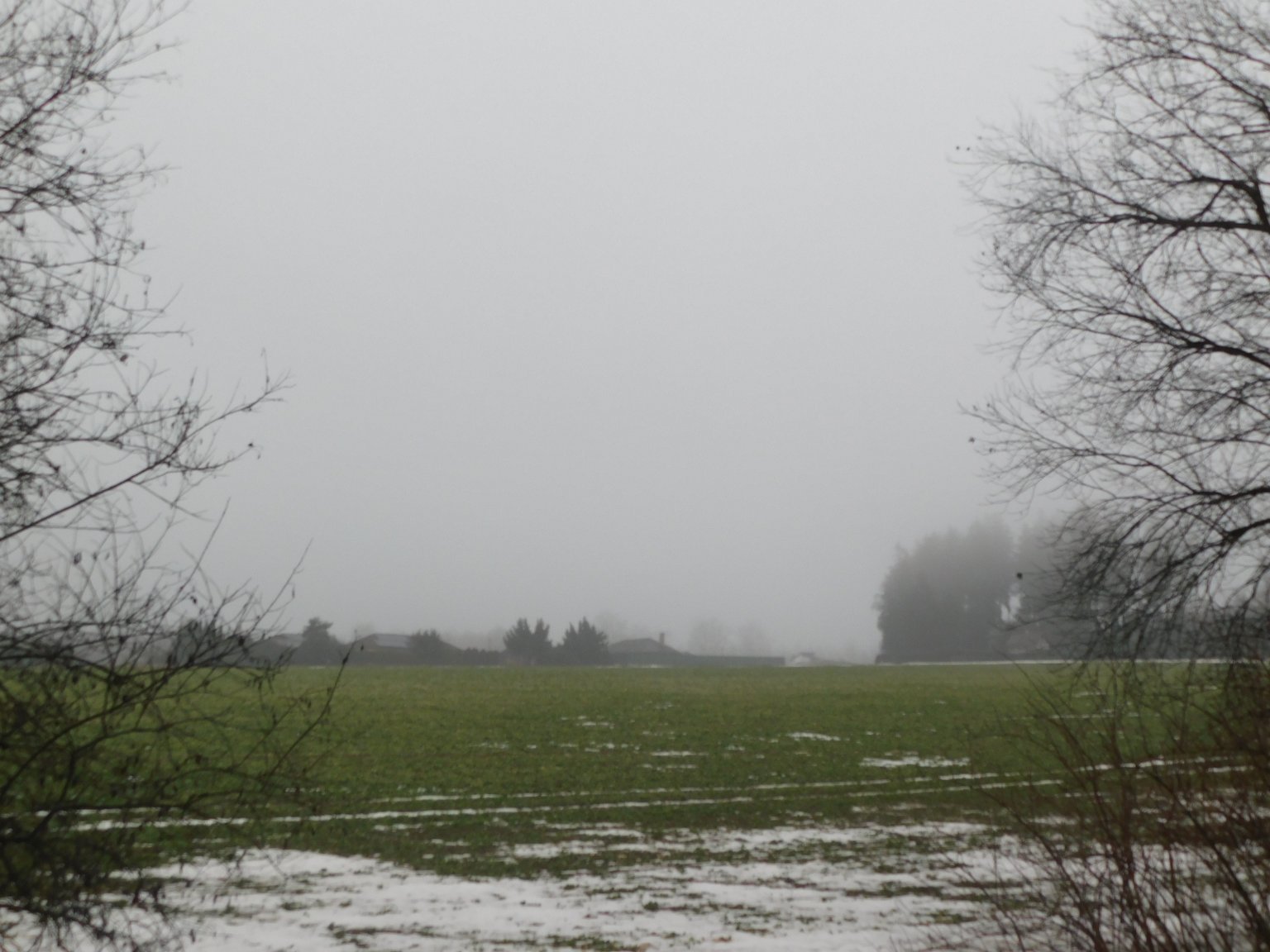 Zataženo a mlhavo, na zemi už téměř žádný sníh neleží, jen stojící voda v led.