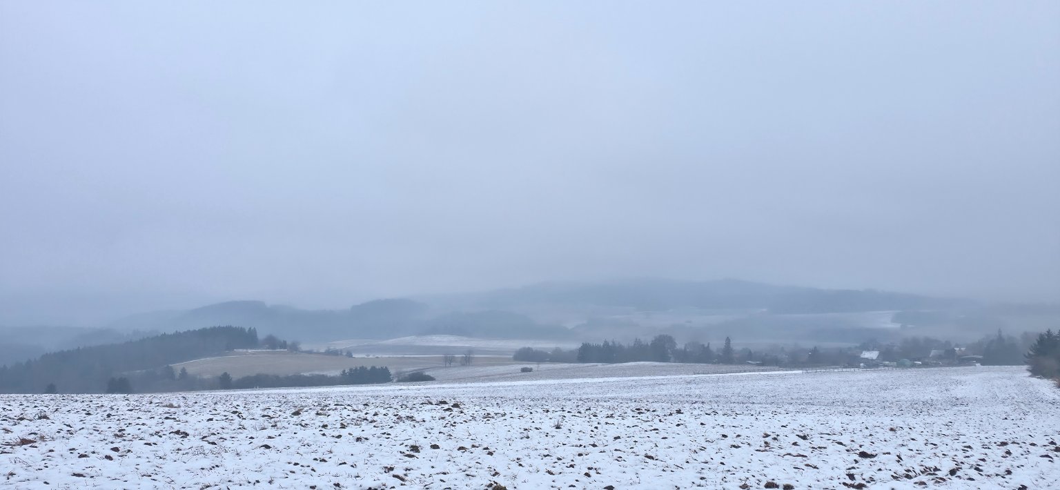 Mlha a velmi ošklivé počasí. Vyskytují se i srážky, je to něco mezi silným mrholením a slabým deštěm. Úhrn srážek za dnešní den zatím je 0,8mm. Je bezvětří, tlak: 995hPa. Denní minimum 1,5°C, maximum 5,2°C.