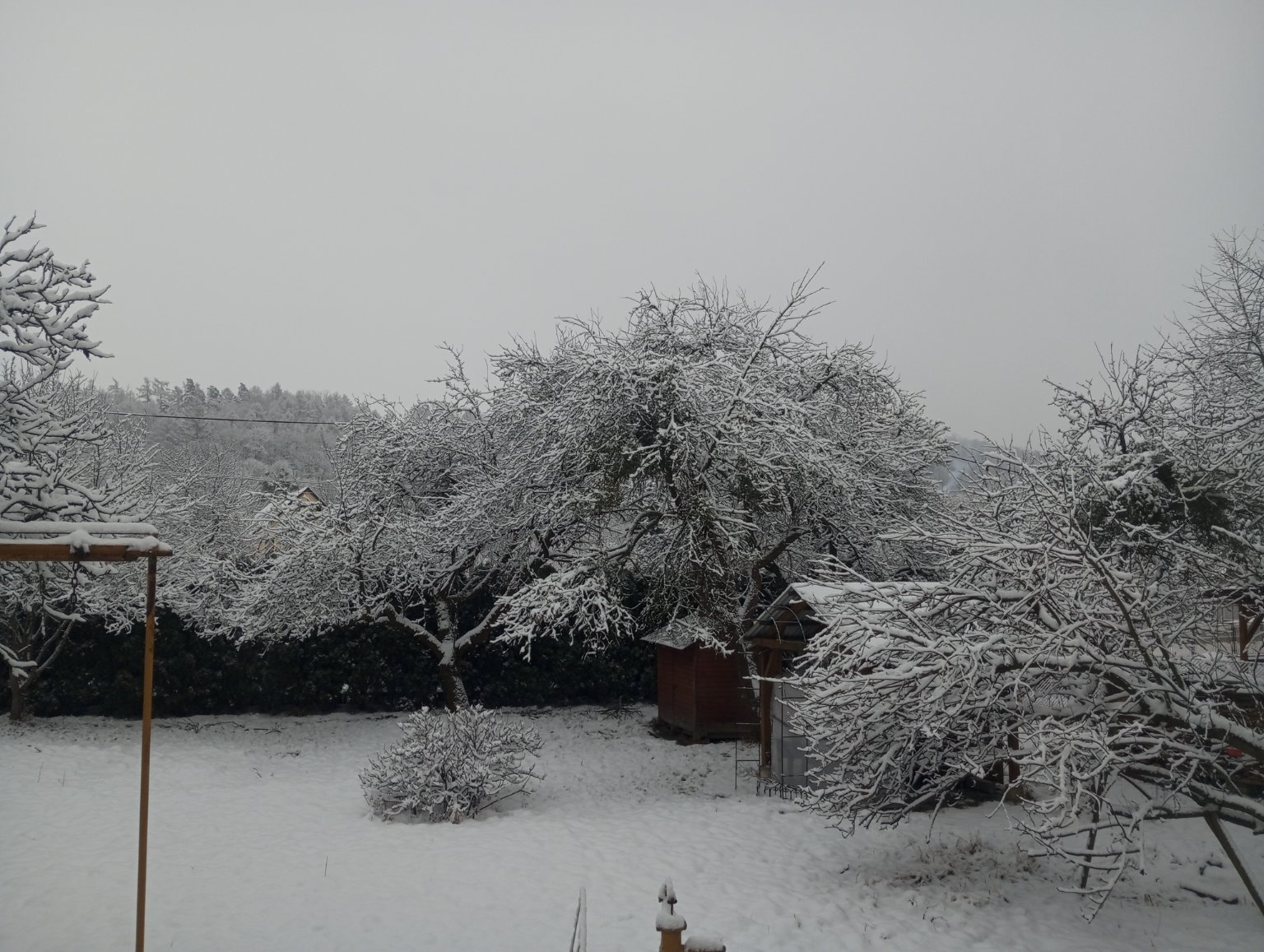 Mírné, chvílemi až silné sněžení, padají velké vločky. Tvoří se poprašek.