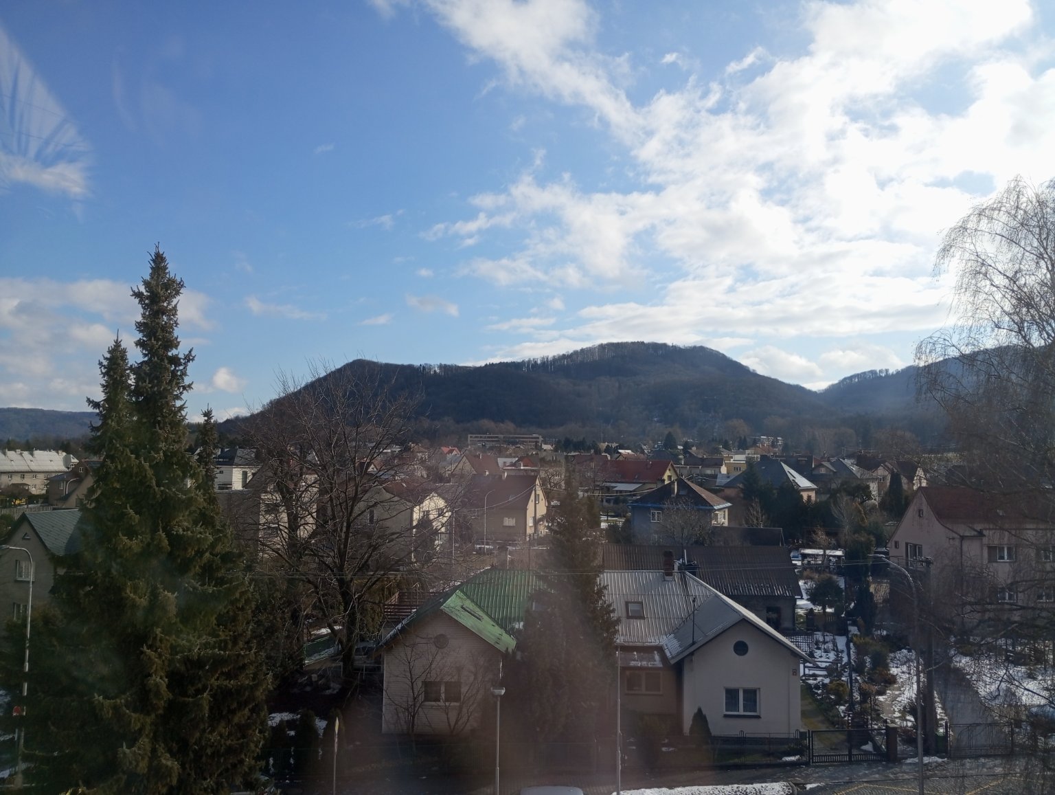 Klidno, vlhkost 99%, min. 0°, tlak setrvalý, srážky od večera 2,6 mm. Za městem ten navátý sníh taje pomalu..