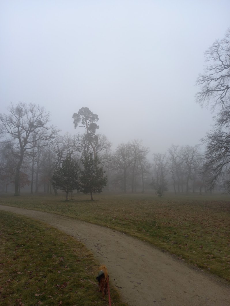 Zataženo, od západu se blíží déšť. Bezvětří (na zahradě sníh už scezla zmizel ale ještě drží u vrat a okolo květin)
