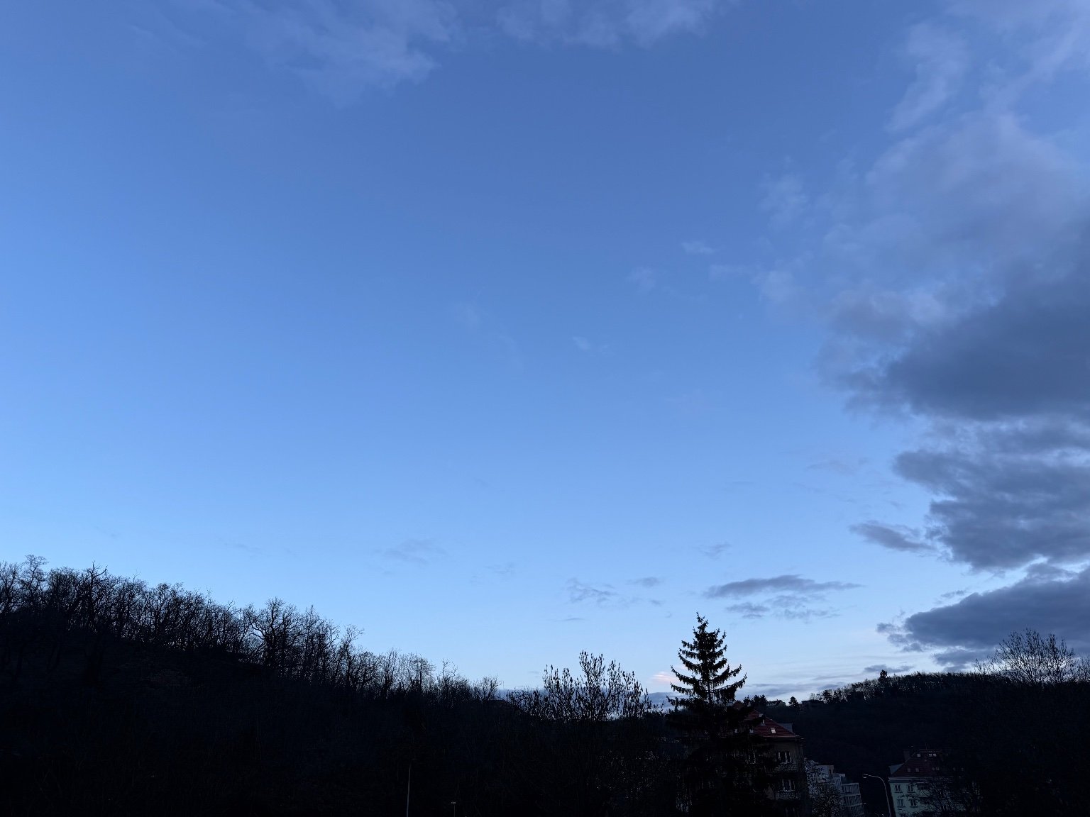 Déšť ustává, oblačnost se protrhává, mírný až čerstvý vítr zeslábnul na slabý západní.Tlak 993 hPa.