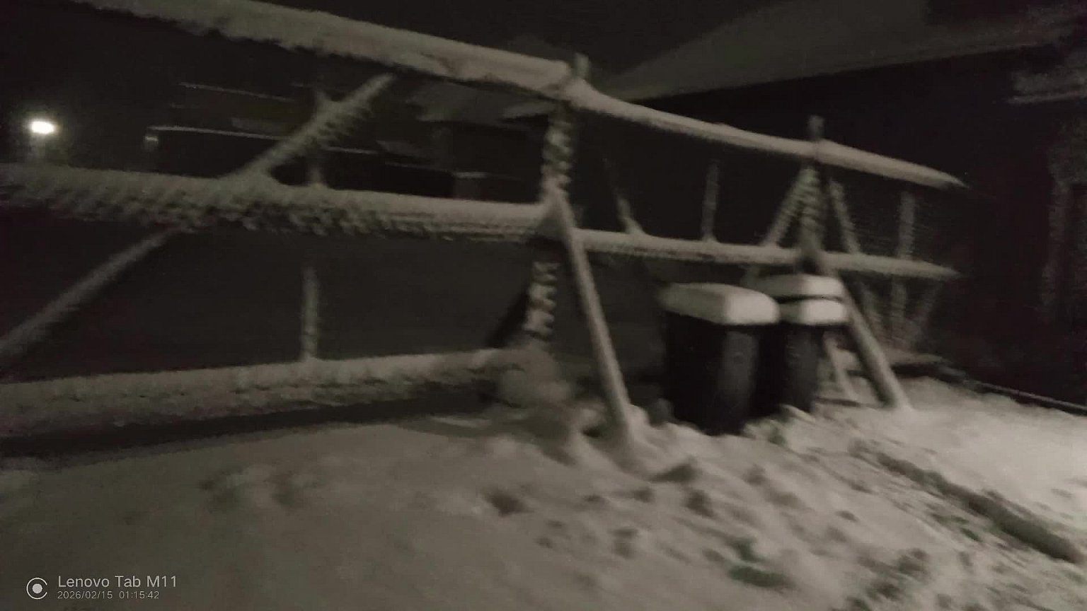 -2°C, Mírné sněžení, Sníh: 12 cm. Nádherně je, sněžení sice zesláblo, ale i tak dost sype a určitě to ještě zesílí..