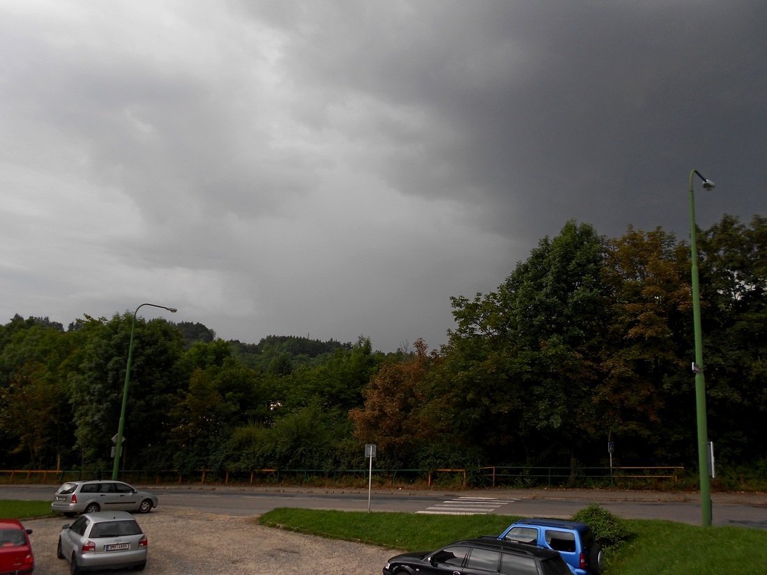 Klidno,tlak 1015hPa,v dálce hřmí,od západu se žene bouřka.