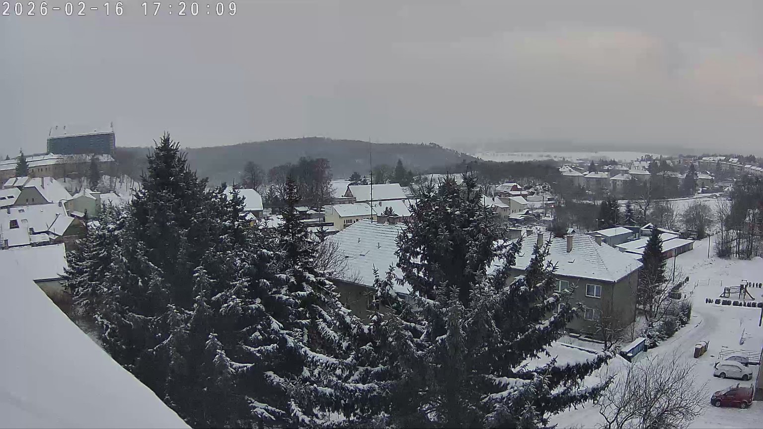 Mírné až silné sněžení, cca 4 cm sněhu.