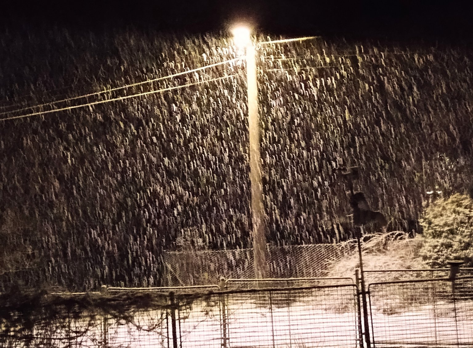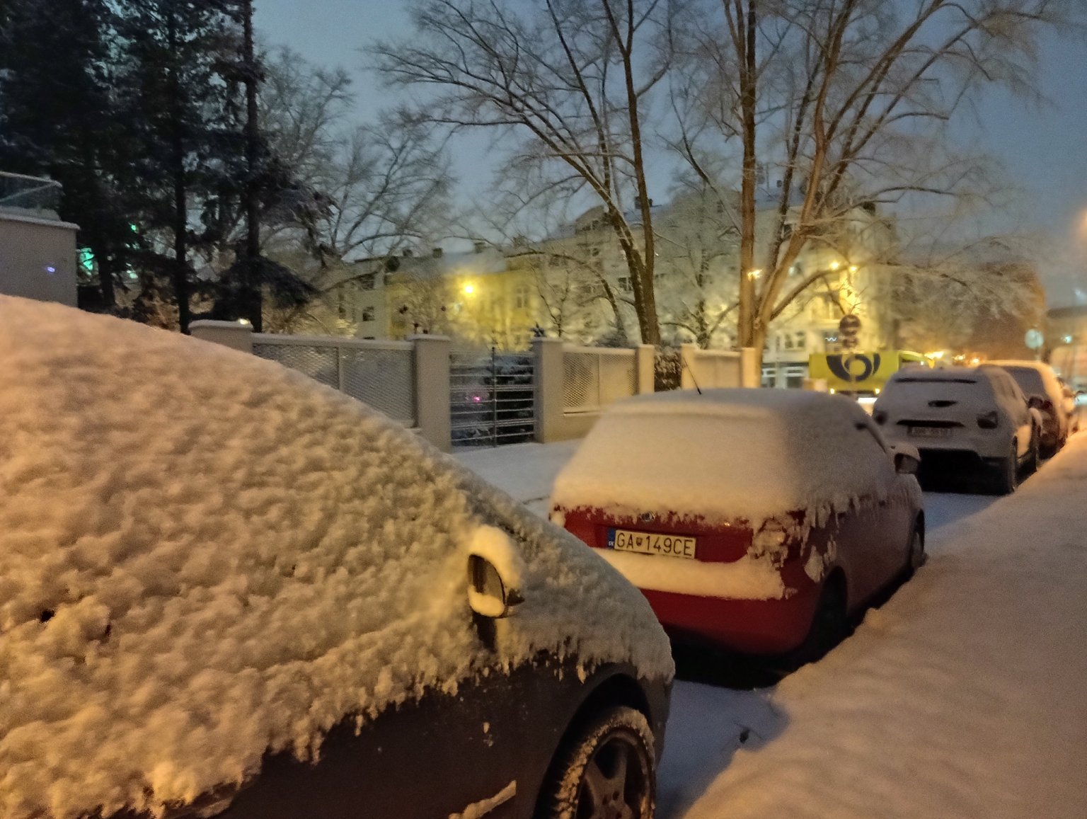 Silné sněžení, nad ránem začalo chumelit a napadlo dost sněhu. Padají větší vločky. Připomíná mi to situaci z 13. ledna. Cca 7 cm sněhu.