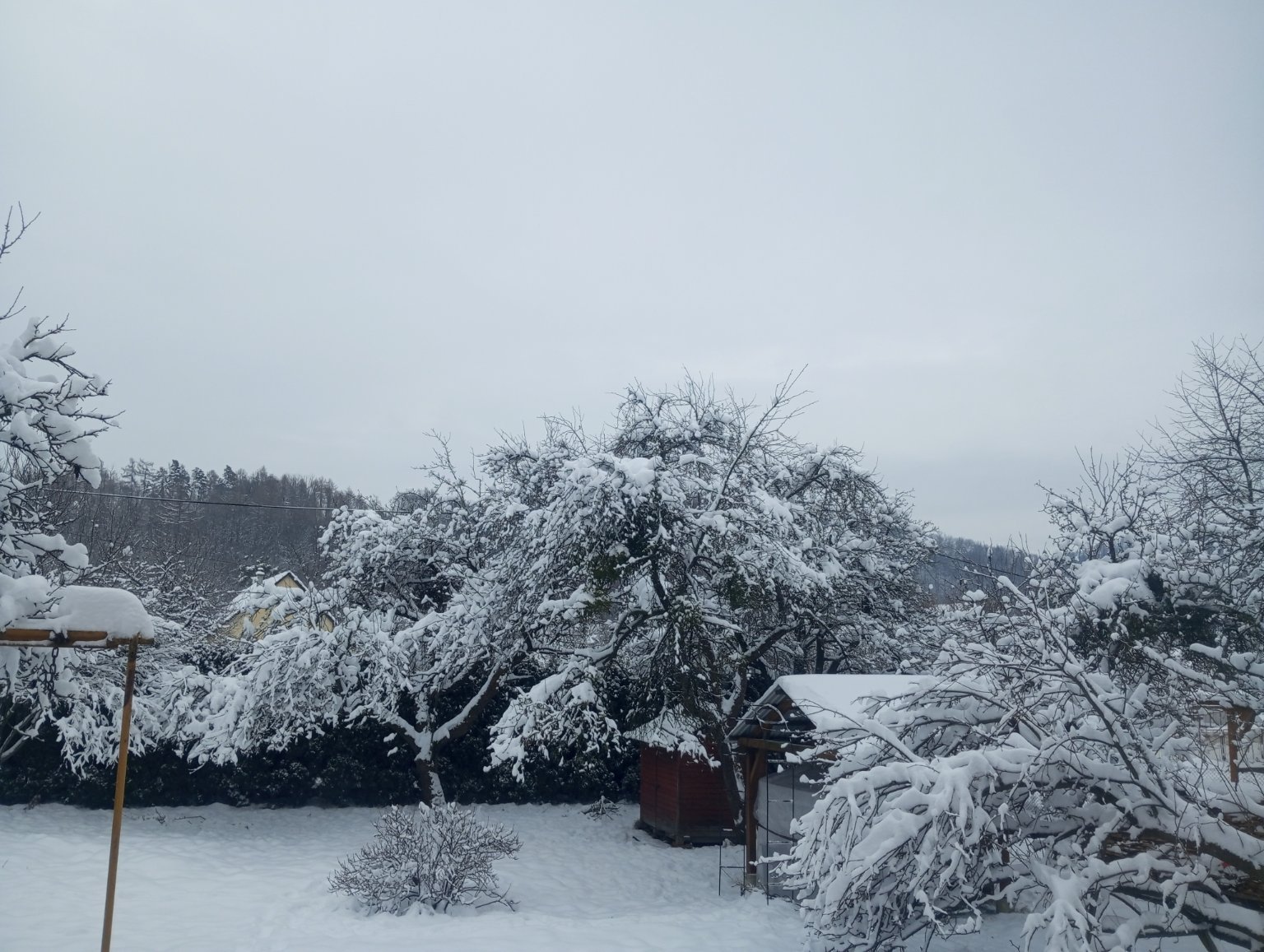 -0,6°C, Velmi slabé sněžení, Sníh: 12 cm. Zas to dost sesedlo... To pásmo se nakonec zas přímo před náma rozpadlo, ale jeho zbytky se ještě furt točí různě chaotický kolem nás...